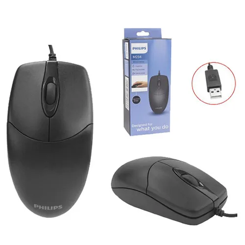 Philips M234 Wired Mouse | 3 Buttons | Optical Sensor | Plug and Play